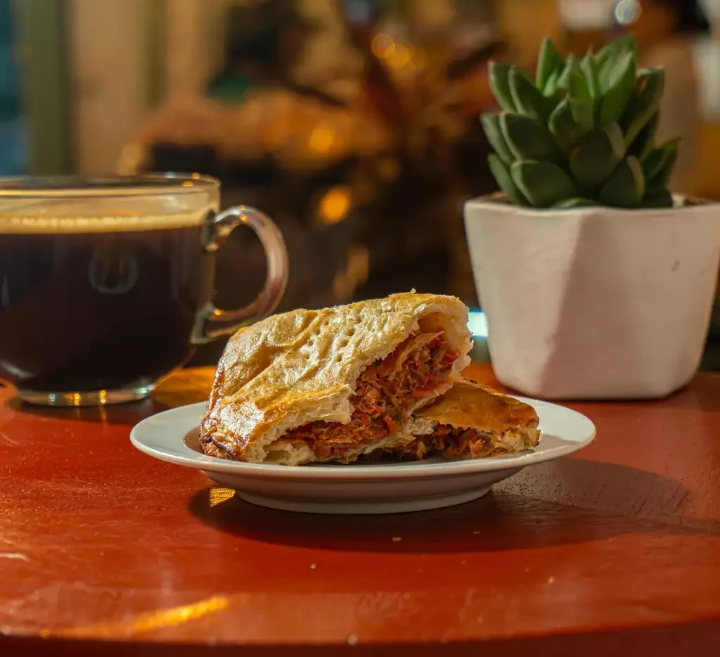 Elaborada con masa hojaldre, relleno de atún a la vizcaína